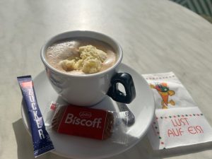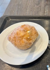 Die Einkehr beim gegenüberliegenden Bäcker hat mich mit einer sehr leckeren Spezialität des hiesigen Bäckers bekannt gemacht. Ich kann nur sagen wirklich lecker. Es handelt sich um eine Art Brandteig mit einer Füllung aus Vanillecreme.